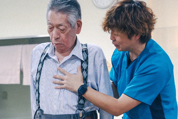 朝のお迎え、お茶出し、健康チェック(体温・血圧、脈拍測定)